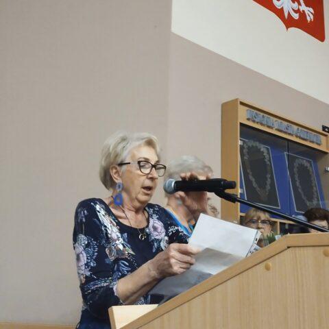 Następnie uhonorowano bukietami kwiatów i bonami towarowymi pięcioro tegorocznych 80-latków. Z tej okazji, prezeska Zofia Michalewicz i Danuta Kiliszek odczytały wiersze autorstwa naszego słuchacza Ryszarda Macula, a zebrani odśpiewali tradycyjne Sto lat!                                                                                                                                                                                                                W dalszej części Zebrania omówione zostały wydarzenia, które się odbyły i te, które są zaplanowane na najbliższy okres.